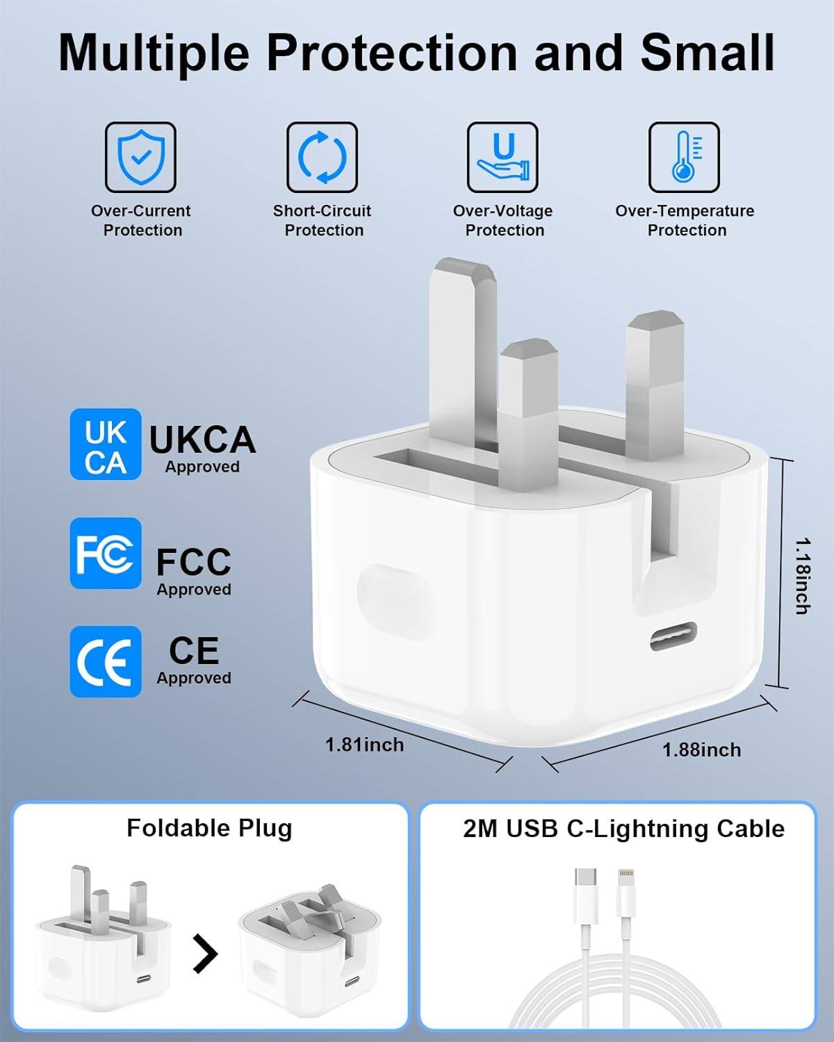 Fast Charging: Provides 20W of power for rapid charging. It's especially effective for newer iPhone models and iPads.